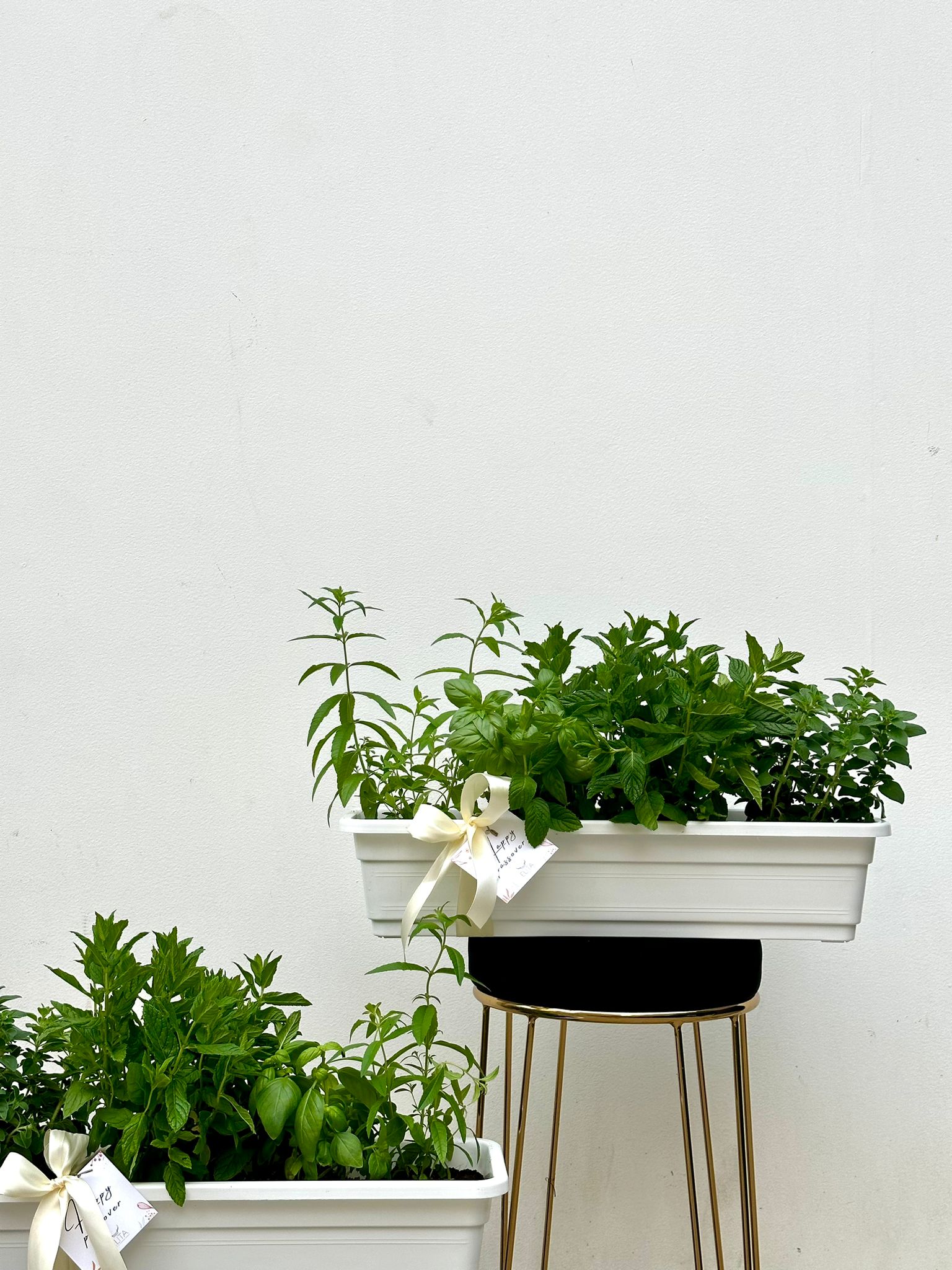 אדנית שתולה ארבעה עציצי תבלין ריחניים (נענע, בזיליקום,לואיזה, זעתר ועוד…).