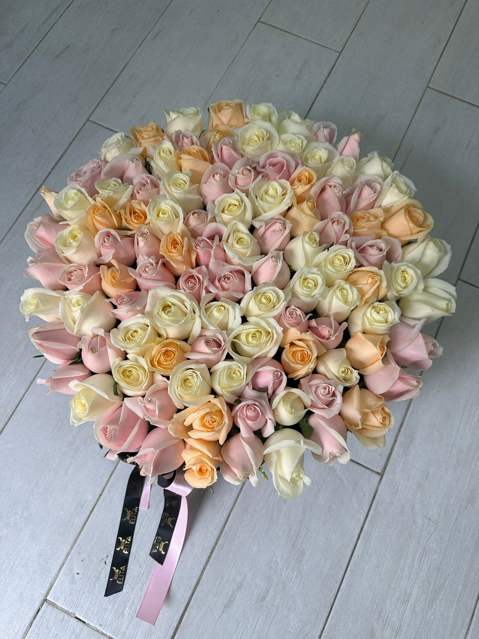 קופסת ורדים ענקית מקטיפה. מכילה כ120 ורדים